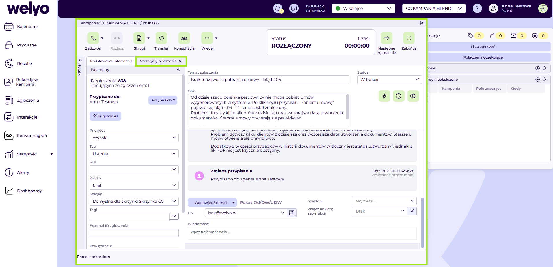 Przejdź do zakładki Szczegóły zgłoszenia.