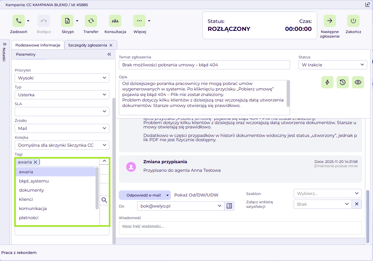 Instrukcja tagowania zgłoszeń — panel Agenta