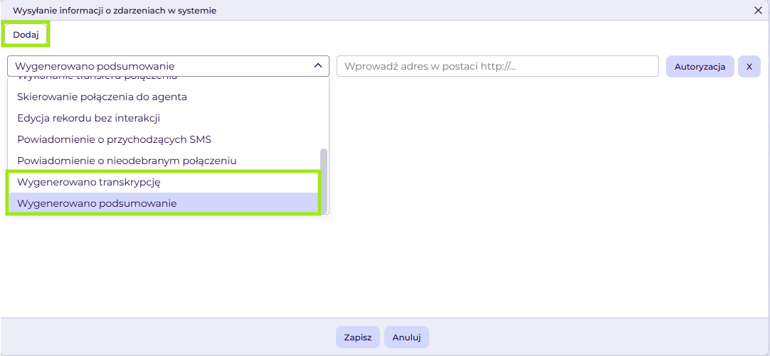 Jak skonfigurować webhooki informujące o wygenerowanej transkrypcji i podsumowaniu?