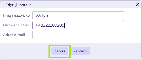 - Wprowadzamy zmiany w kontakcie.
