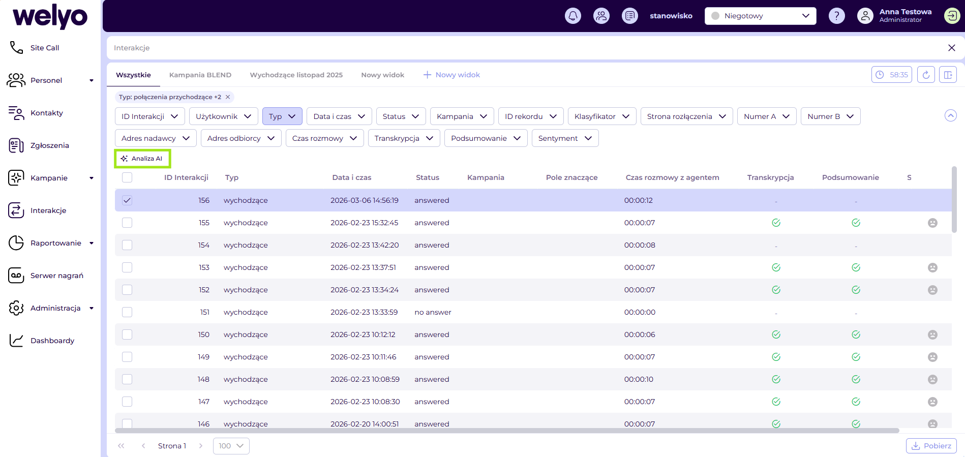 Celem wersji jest umożliwienie zbiorczego zlecania Analizy AI dla wielu interakcji jednocześnie. Zmiana upraszcza obsługę rozmów telefonicznych i skraca czas potrzebny na przekazanie większej liczby odebranych połączeń do analizy.