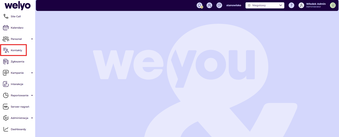 Dodano nowy widok Kontakty dostępny dla administratora i nadzorcy w menu bocznym. Widok prezentuje dane kontaktów (analogiczne do miniCRM) w odświeżonej formie.